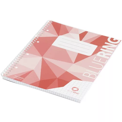 Spirálfüzet A4, 70lap, műanyag borítós perforált lyukasztott Bluering® kockás