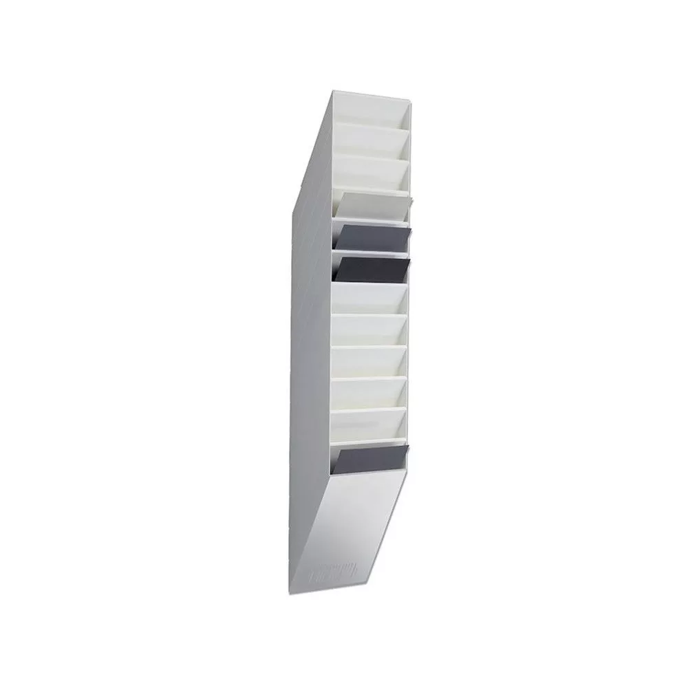 Egyszerű designban megalkotott prospektustartó rendszer A4 méretű dokumentumok tárolására alakalmas. 24 mm-es töltési kapacitással. A rendszer 6 kg teherbírásig bővíthető. Ideális recepciókon, bemutatótermekben, várókban és kiállításokon. Méret: 1115 x 240 x 135 mm (M x SZ x H) Katalóguskód: 24821