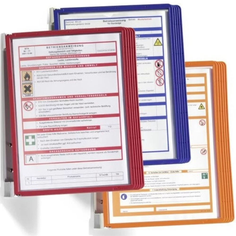 Fém fali tartó 5 db SHERPA® A4 méretű panellel. Piros, sötétkék vagy narancssárga színben. Katalóguskód: 27324