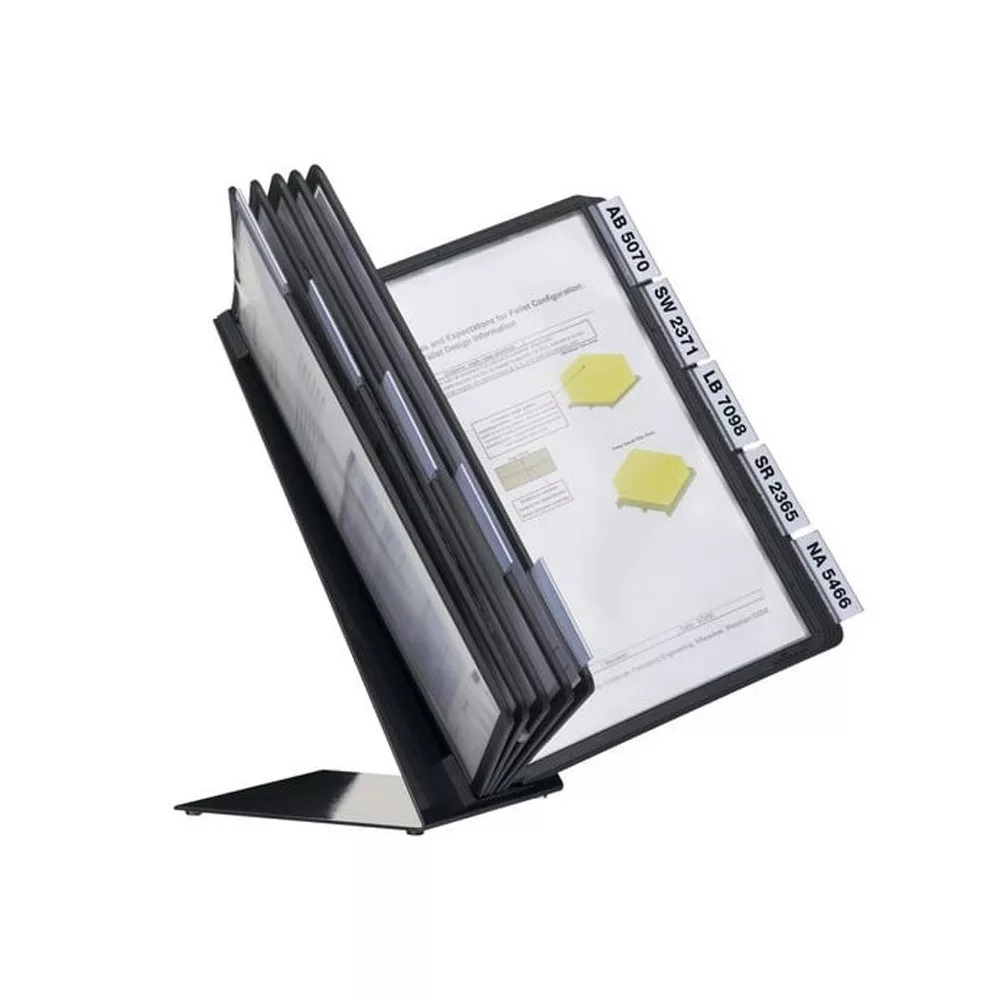 Bemutatótábla tartó, 10 panelhez Vario asztali, A4, fekete