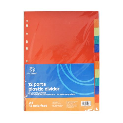 Elválasztólap, színes műanyag 12 részes Bluering®