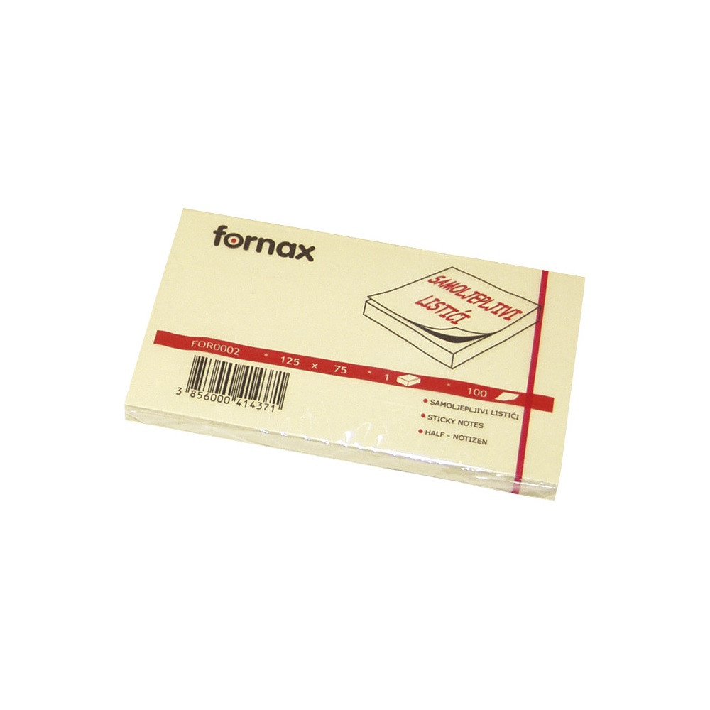 Jegyzettömb öntapadó, 75x125mm, 100lap, Fornax, sárga