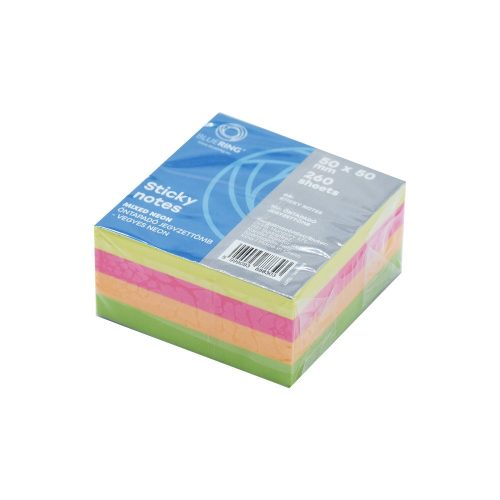 Jegyzettömb öntapadó, 50x50mm, 250lap, Bluering® , vegyes neon