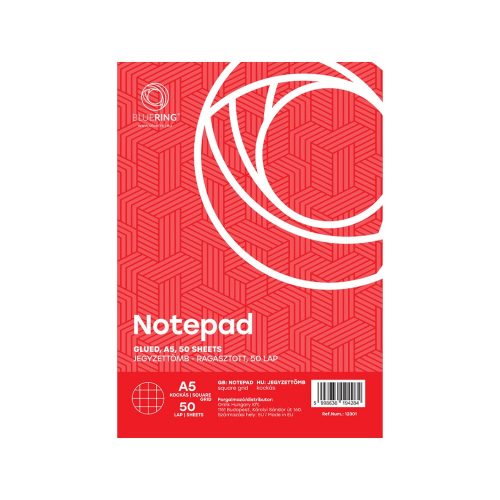 Jegyzettömb ragasztott, A5, 50lap, Bluering® kockás