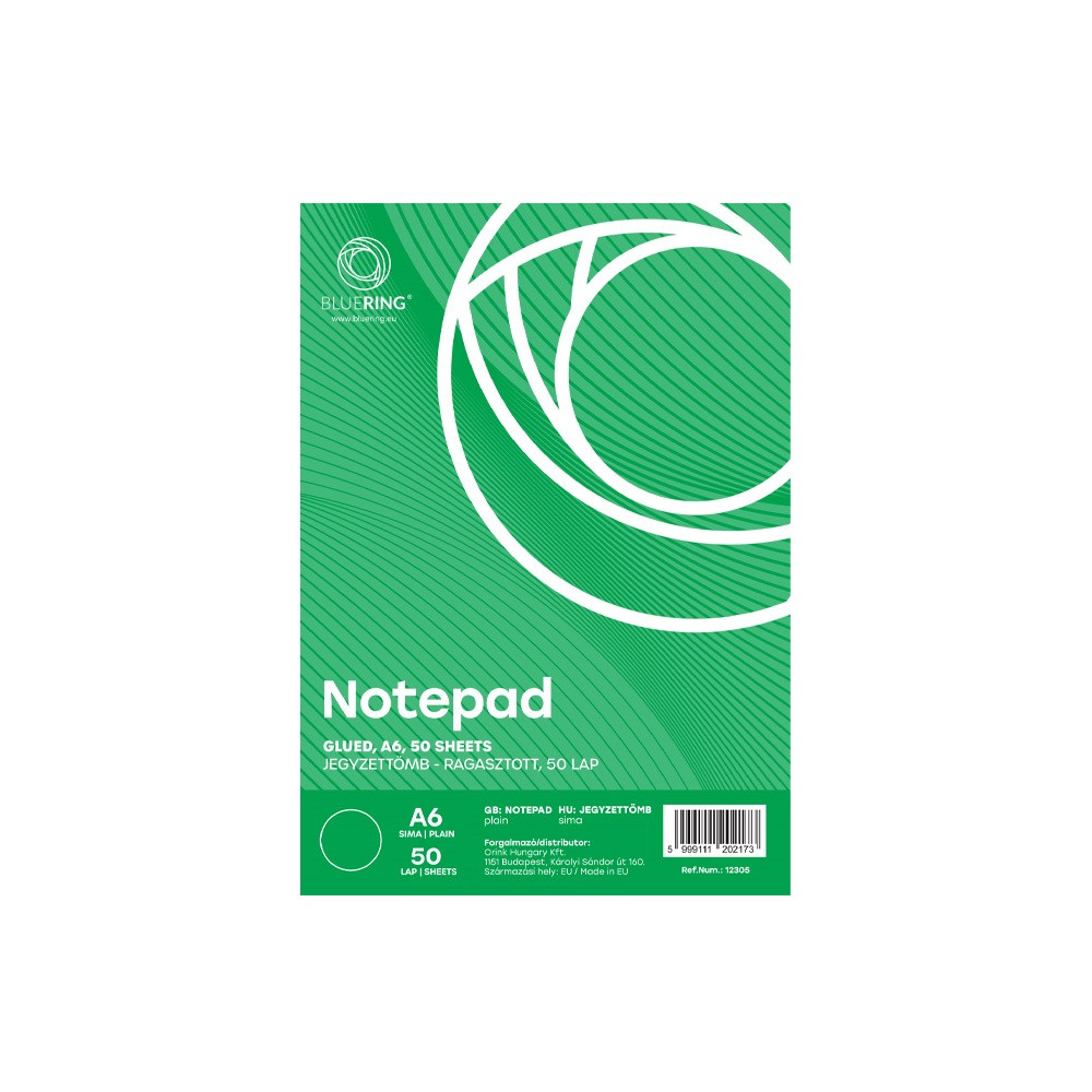 Jegyzettömb ragasztott, A6, 50lap, Bluering® sima