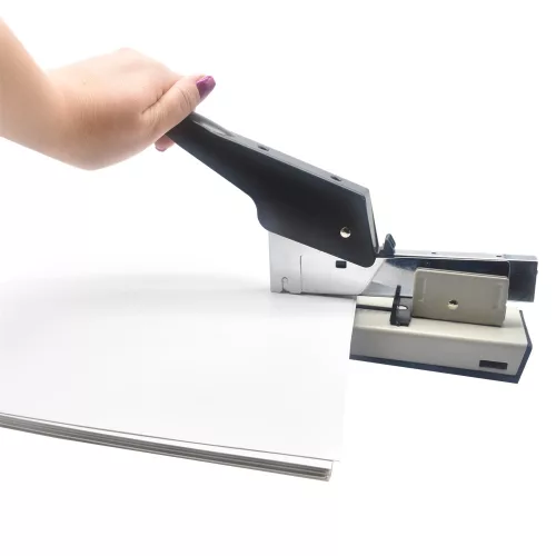 Nagy teljesítményű, karos, fém tűzőgép. Elöltöltős, állítható fűzési mélység 70mm-ig. Csúszásgátló talp biztosítja a stabil használatot. 23/6 -23/13, 23/14 tűzőkapcsokhoz. Lapkapacitás: 100 lap Katalóguskód: 13662