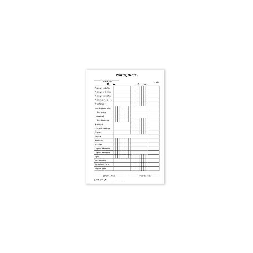 Pénztárjelentés A5, 25x2lapos B.KISKER.104 Bluering®