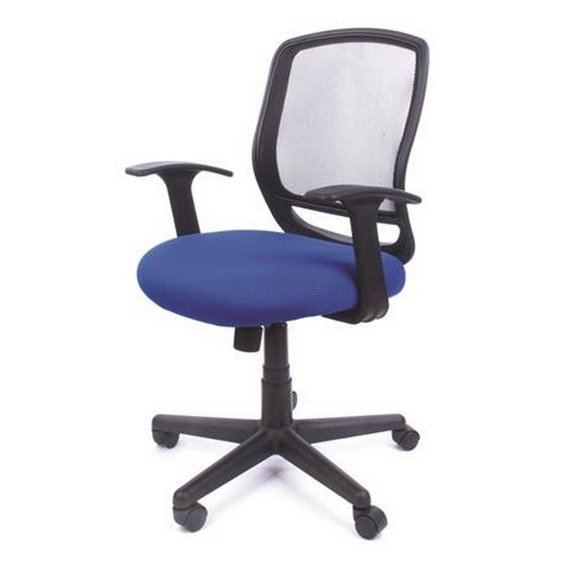 Irodai szék, karfás, kék szövetborítás, feszített hálós háttámla, fekete lábkereszt, MAYAH.... - /db