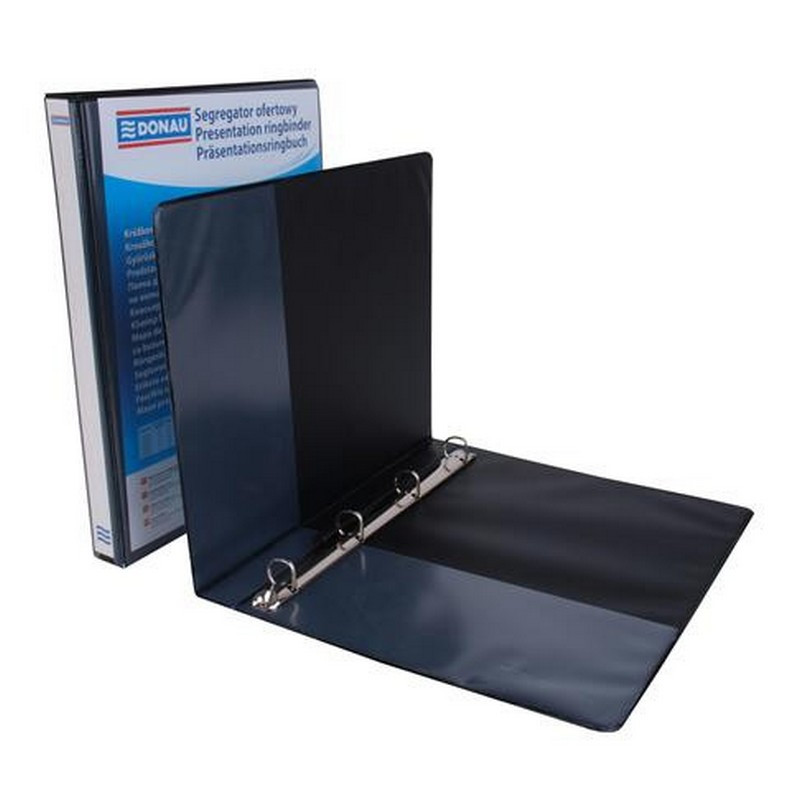 Gyűrűs könyv, panorámás, 4 gyűrű, D alakú, 44 mm, A4, PP, DONAU, fekete. - /db