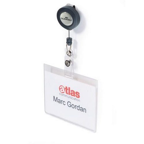 Névkitűző, kihúzható tartóval, 60x90 mm, DURABLE. - /csom (10 db)