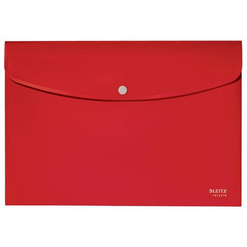 Irattartó tasak, A4, PP, patentos, LEITZ "Recycle", piros