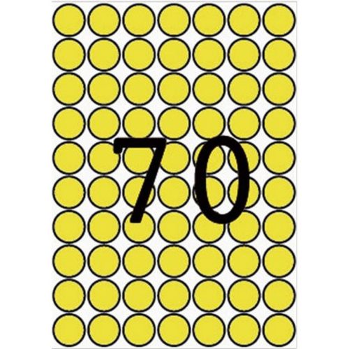 Etikett, 19 mm kör, színes, A5 hordozón, APLI, sárga, 560 etikett/csomag. - /csom (8 lap)