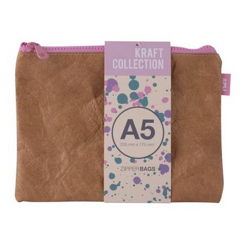 Rendszerező tasak, cipzáras, bőrhatású textúra, műanyag, A5, APLI "Kraft", vegyes színű ci.... - /db