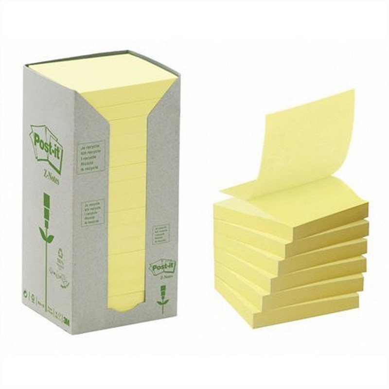 Öntapadó jegyzettömb, "Z", 76x76 mm, 16x100 lap, környezetbarát, 3M POSTIT, sárga. - /csom (1600 lap)