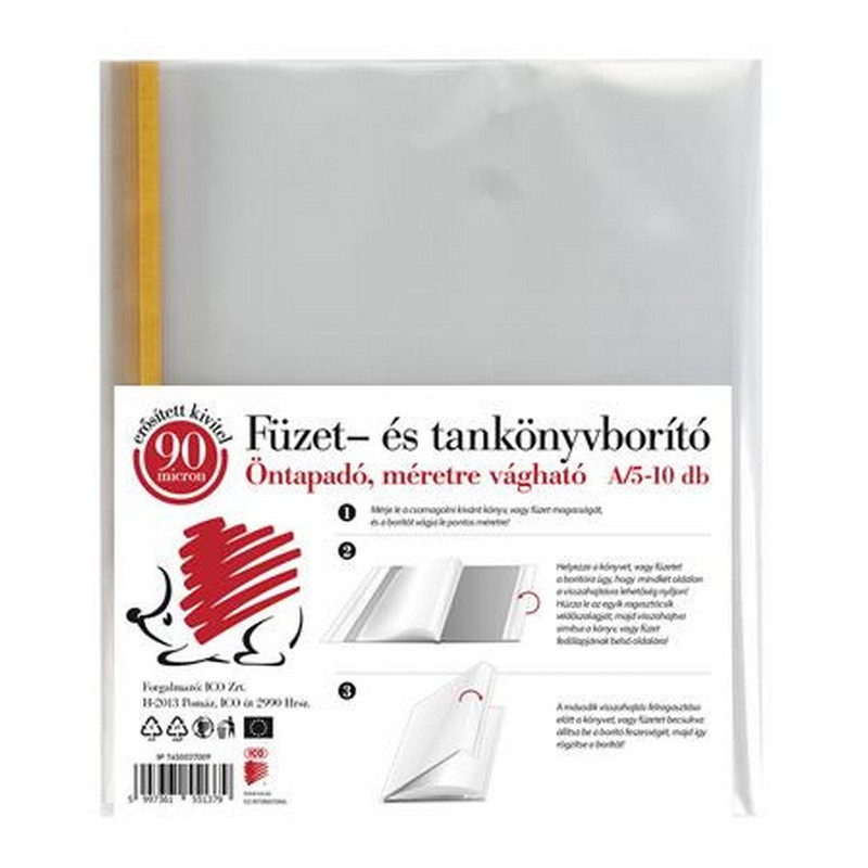 Könyvborító, A5, 90 mikron, víztiszta, öntapadó csíkkal, ICO "Süni". - /csom (10 db)