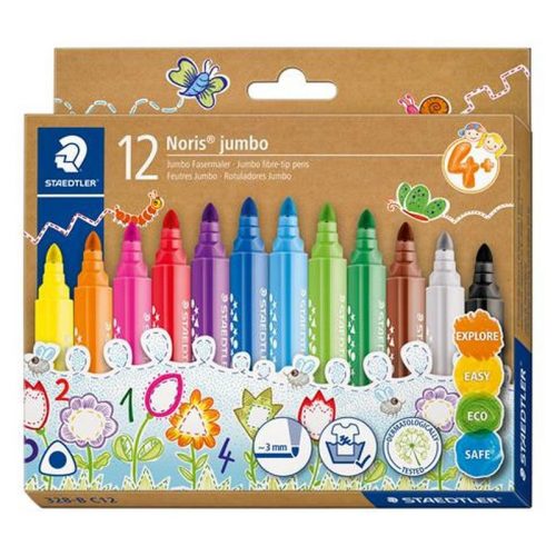 Filctoll készlet, 3 mm, háromszögletű, kimosható, STAEDTLER "Noris® jumbo 328-B", 12 külön.... - /készlet (12 db)