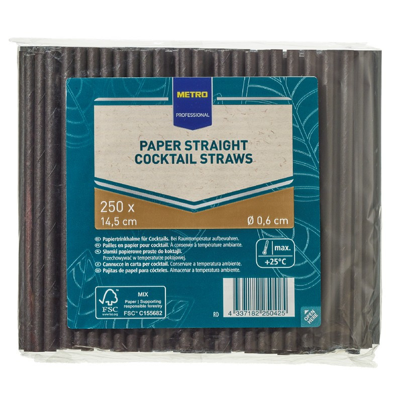 Metro Professional Papír Szívószál Fekete 6x145 mm 250 db/csomag