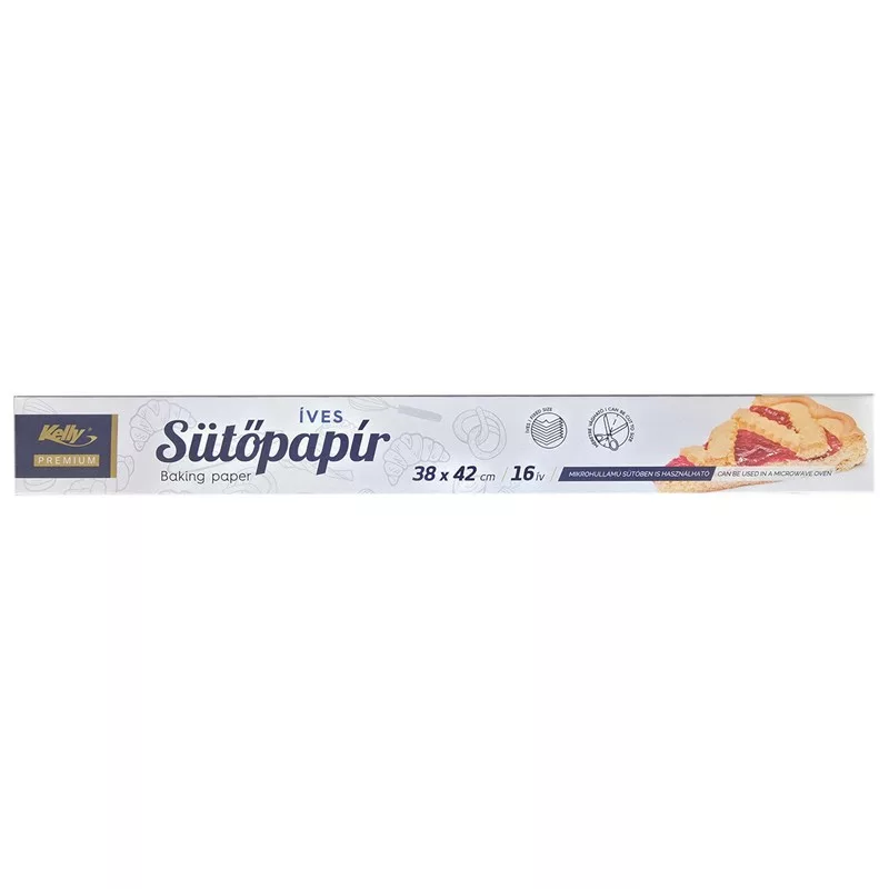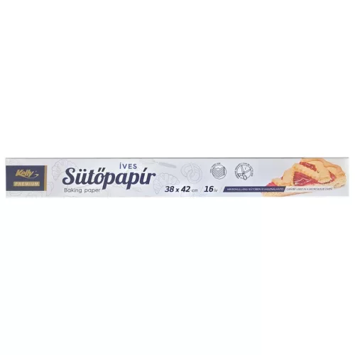 Szilikonos sütőpapír 38 x 42 cm 16ív/doboz, A Kelly prémium szilikonos sütőpapír praktikus és megbízható konyhai segédeszköz, amely megkönnyíti a sütést és a tepsik tisztán tartását. A kétoldalas szilikonbevonatnak köszönhetően az ételek nem tapadnak le, így sok esetben zsiradék használata sem szükséges. Ideális sütemények, péksütemények, pogácsák, pizzák vagy akár húsételek készítéséhez is.
