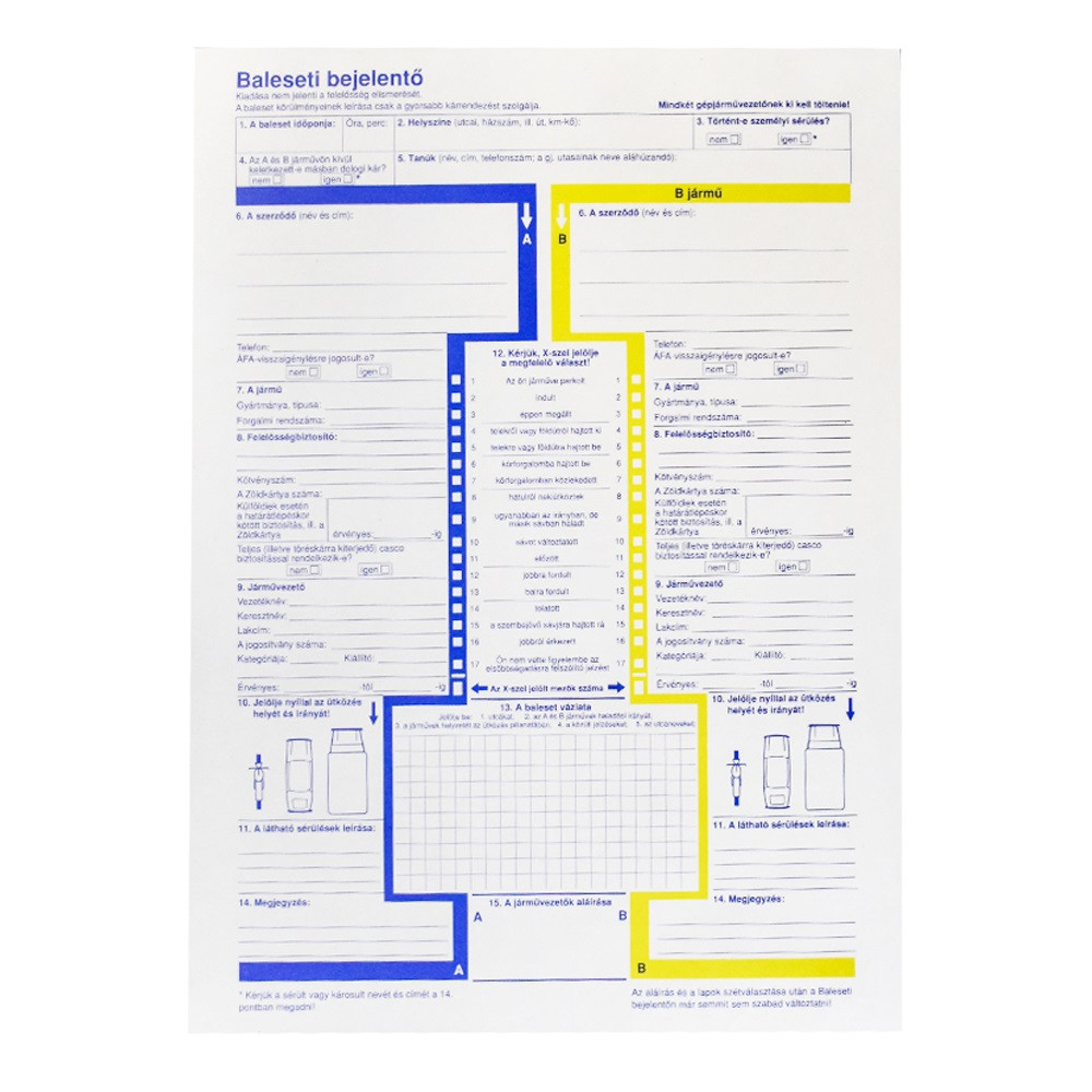 Baleseti bejelentő lap A/4, 2 példányos