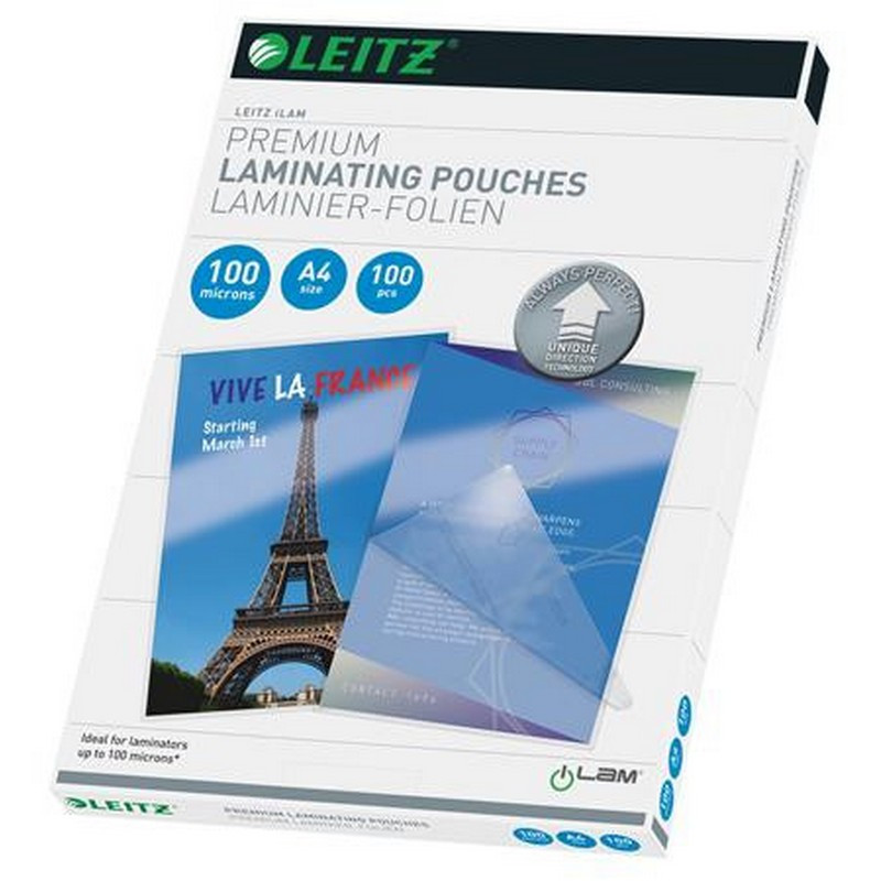 Meleglamináló fólia, 100 mikron, A4, fényes, UDT technológiával, LEITZ "iLam". - /csom (100 db)