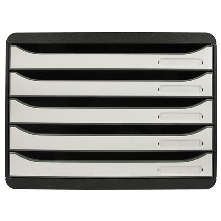 Irattároló, műanyag, 5 fiókos, EXACOMPTA "BIigBox Glossy", fekete-fehér - /db