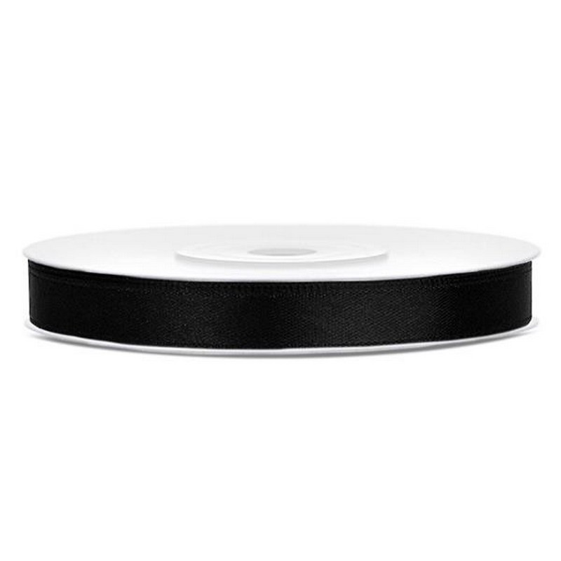 Szatén szalag, 6 mm, fekete. - /db (25 méter)