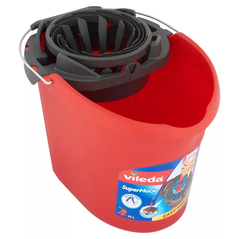 A Vileda Supermop műanyag vödör kétirányú csavarásnak köszönhetően, minden oldalról kicsavarja a felmosó fejet, ezáltal gyors száradást biztosít a felmosás után. A 10 liter kapacitású vödör ellenálló műanyagból készült, így tartós és stabil.